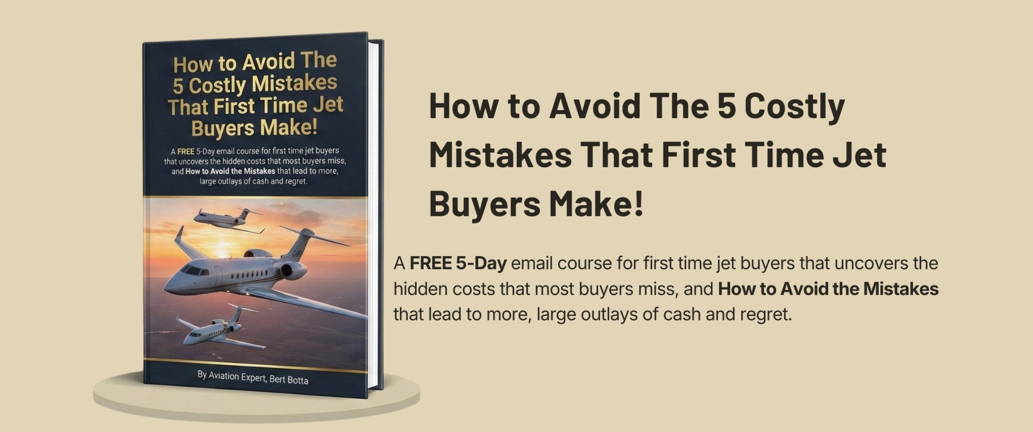 • Maybe recovering some expensive, unanticipated costs.This FREE email course lays out the mistakes that so many first time jet buyers make. I walk you through the exact steps you need to take to assure you buy your airplane without regret and without it costing you a ton of additional money, heartache and potential family strain.